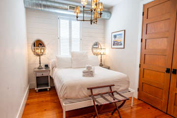 Live like a local in this show-stopping one queen bedroom, one bath apartment located in downtown Charleston. Housed in an historic home dating to 1851, every detail has been fully renovated to feature antique heart pine flooring, tongue and groove walls, and European hardware dating to the original period of the home. This suite has a fully custom kitchen and beautiful living space.